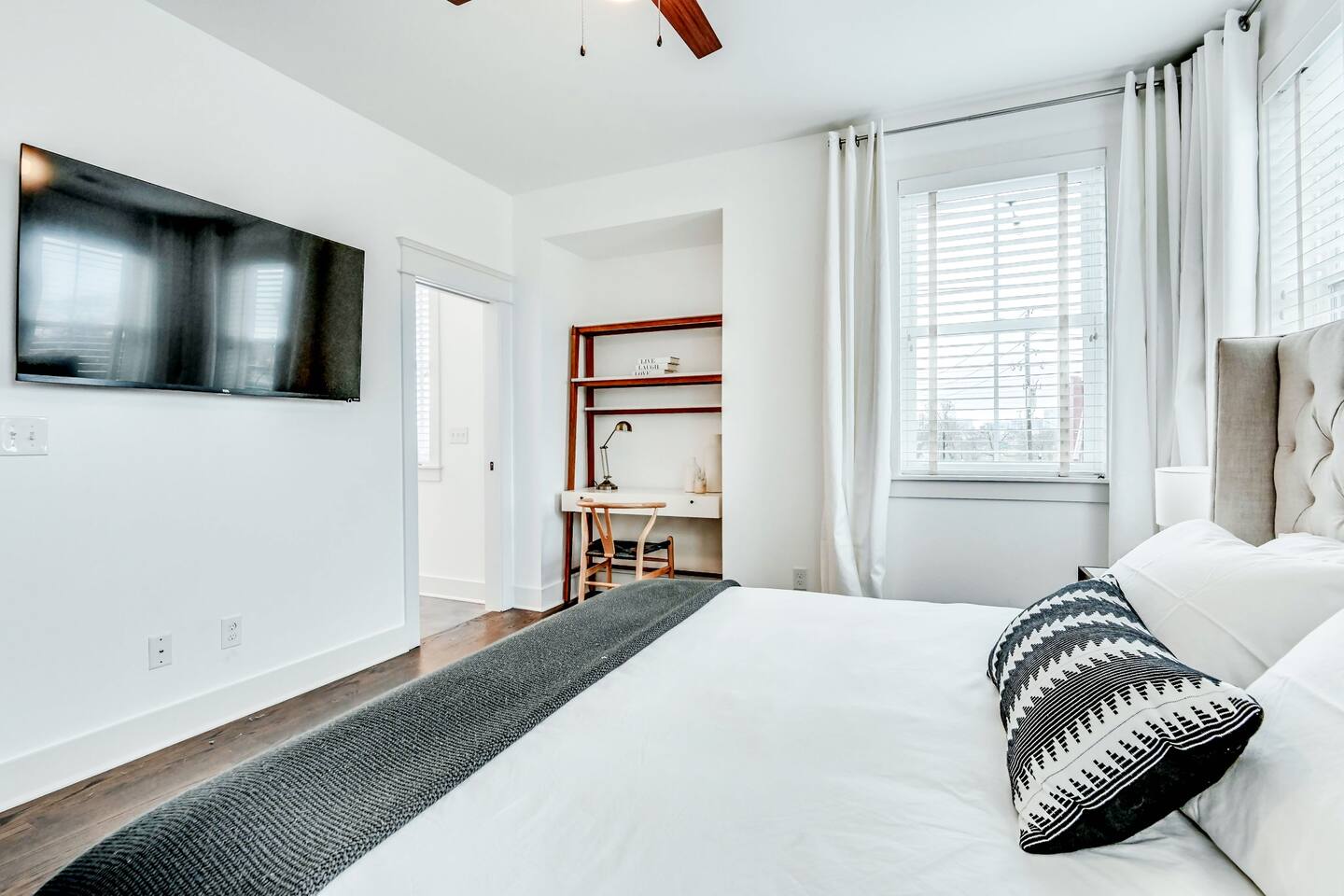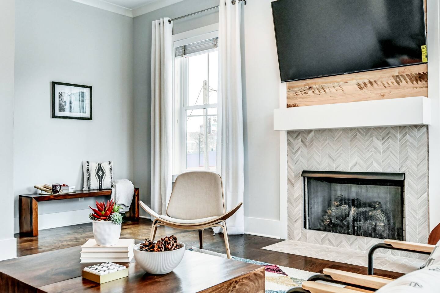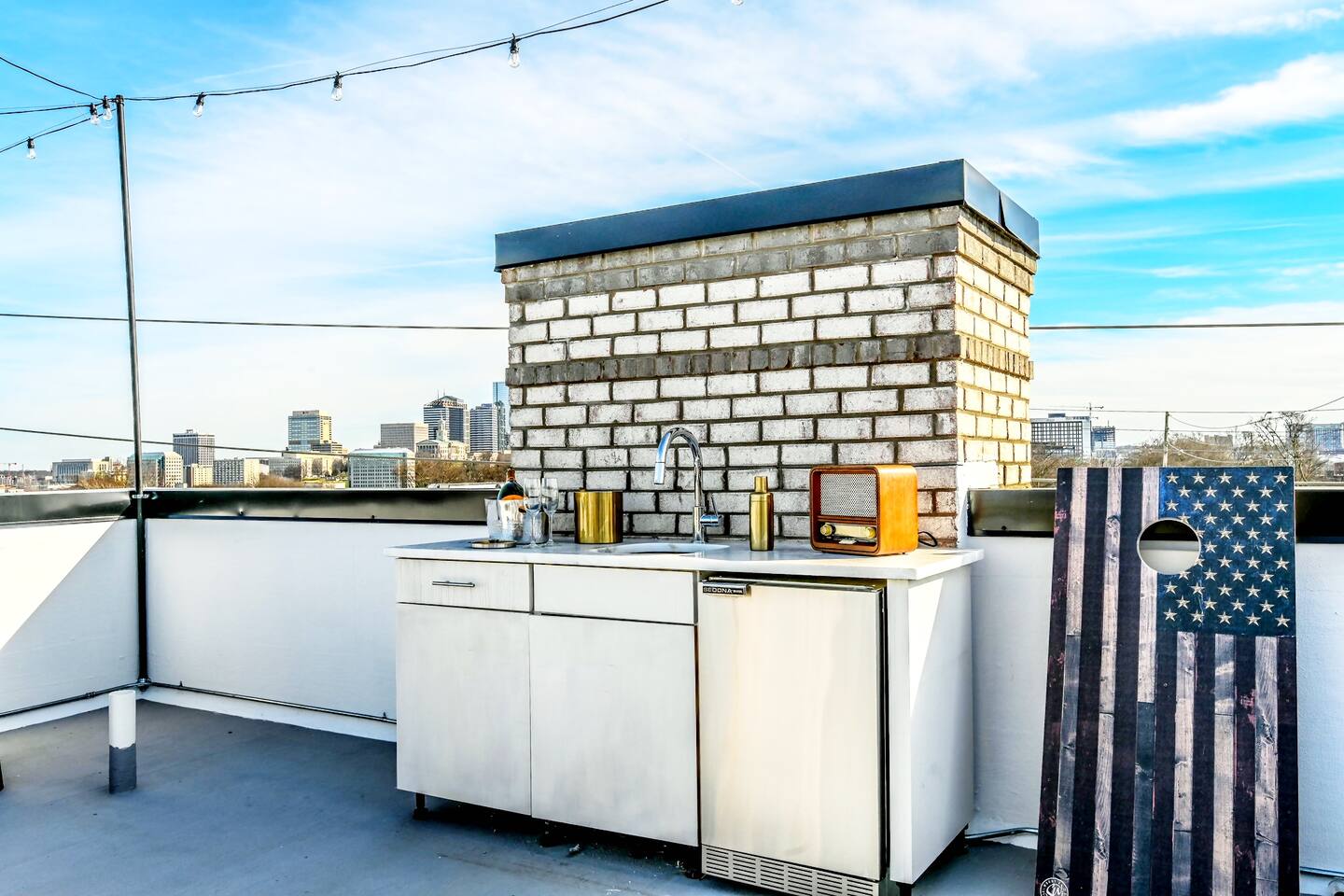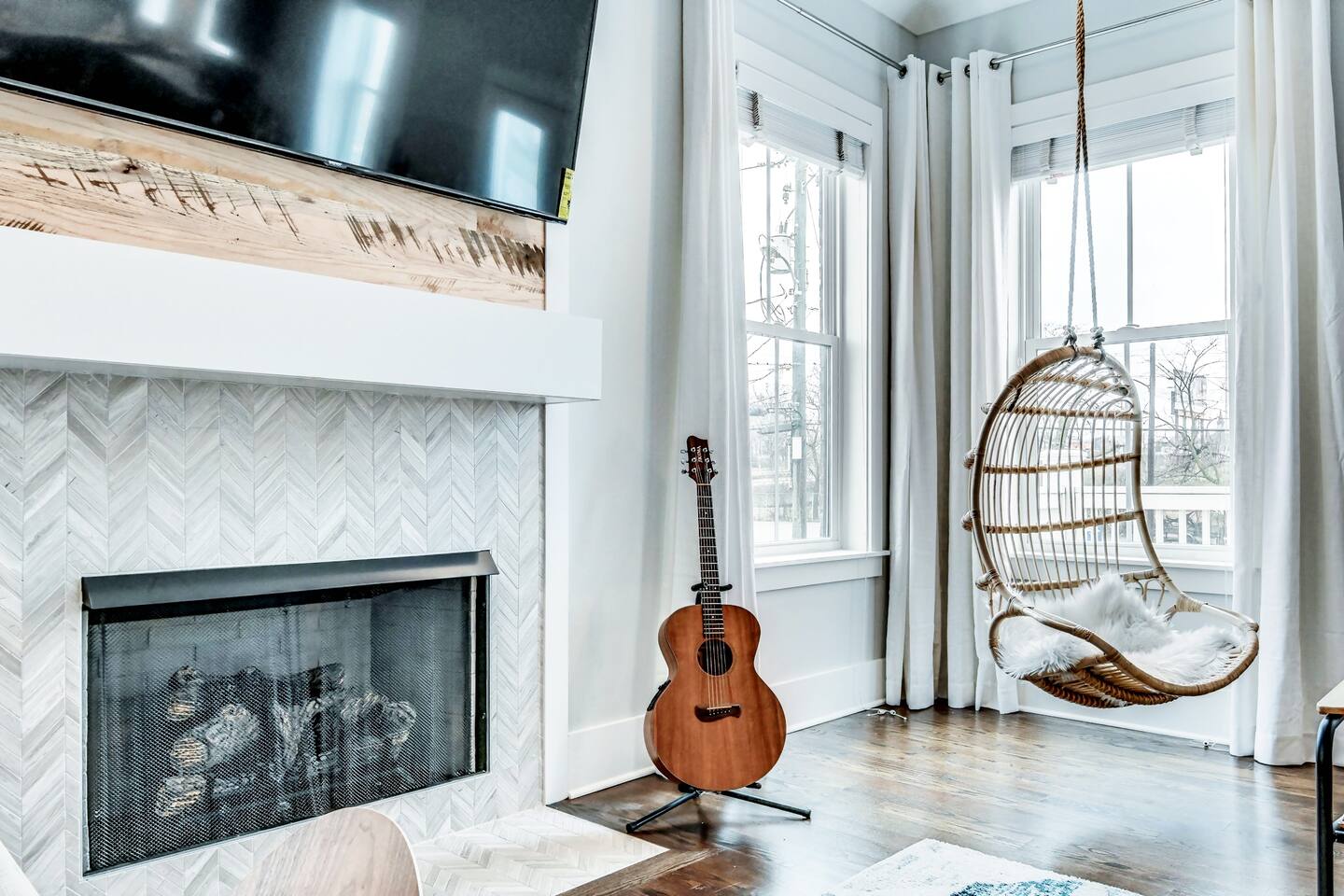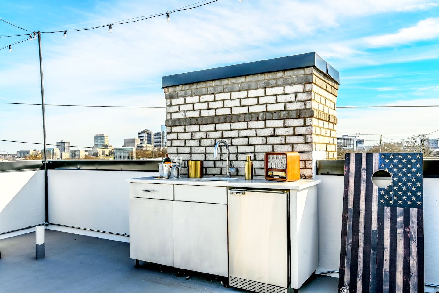 Celebrate House™️ | Luxe Rooftop & Movie Nights A modern, high-end townhouse designed for unforgettable group stays! Located just 1.2 miles from Broadway and steps from Germantown’s top dining and nightlife, this 3BR/3.5BA home features a stunning rooftop terrace with lounge seating, a BBQ, and daybeds—perfect for entertaining. Inside, enjoy a spacious open-concept living area, a 150” projection screen for movie nights, and spa-like bedrooms with private ensuite baths. Thoughtfully designed with luxury furnishings, a fully stocked kitchen, and high-end amenities, Celebrate House™️ is the ultimate Nashville getaway! ❤️ Add Celebrate House™️ to your wishlist now by clicking the heart in the upper-right corner! THE ROOFTOP: ☞ Daybeds, lounge furniture, & dining tables ☞ BBQ grill & kitchenette w/ fridge – perfect for entertaining ☞ Sunrise yoga, fireside chats, & evening cocktails under the stars WHAT'S ON EACH LEVEL: ☞ Floor one — 1 bedroom with ensuite bath ☞ 2nd floor - Kitchen, Dining, Living room, Fireplace, Two balconies, Half Bath ☞ 3rd floor — Two Bedrooms with Ensuite bathrooms ☞ 4th — Rooftop with Fireplace, Corn Hole, Tables, Seating, and Daybed THE SPACE: ✭ “Every detail felt curated—truly a five-star experience.” ☞ Open-concept living space w/ soaring ceilings & Ibiza curtains ☞ Plush hanging chair for the ultimate relaxation moment ☞ Fully equipped modern kitchen w/ Keurig, Vitamix & Wüsthof knives ☞ Dining space comfortably seats 10-15 for shared meals & special occasions ☞ 150” living room projection screen – perfect for movies or group slideshows LUXURY BEDROOMS & AMENITIES: ☞ Private ensuite bathrooms in every room ☞ Vanity makeup mirrors, hairdryers, curling irons & desks ☞ Smart TVs, ironing boards & spacious closets ☞ West Elm furniture & brand-new memory foam mattresses for cloud-like sleep ☞ Bigelow bath products & all-natural Meyers cleaning products LOCATION: ☞ 1.2 miles to Broadway’s honky tonks & nightlife ☞ Walk to Germantown’s best coffee, crepes, & cocktails ☞ Minutes from parks, whiskey tastings & Nashville’s hottest restaurants ✭ “From rooftop sunsets to cozy nights in, this home MADE our trip!” 📍 Follow us on IG for a sneak peek: @CelebrateHouseNash Other Perks: ☞ Free street parking (no permit required) ☞ Keyless entry & 24/7 self check-in ☞ Stocked coffee bar & luxury amenities