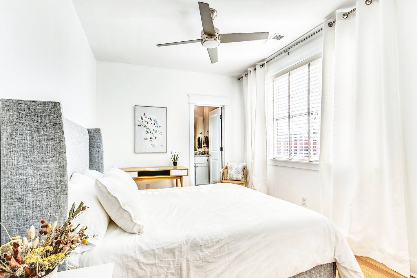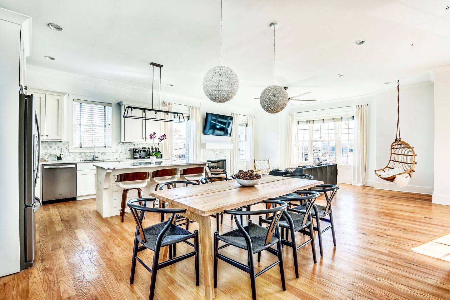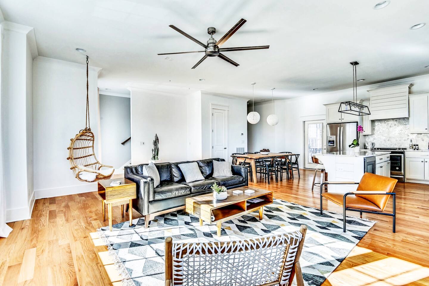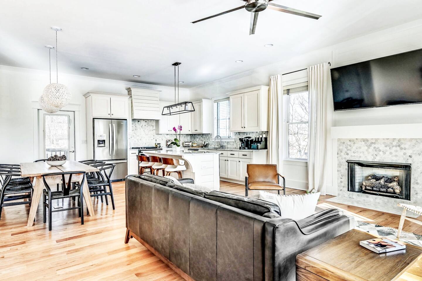Designed for unforgettable group stays, Prosper House™️ is a modern, high-end townhouse just 1.3 miles from Broadway and steps from Germantown’s best coffee, dining, and nightlife. With an expansive rooftop terrace, a 150” projection screen, and sleek, spa-like bedrooms, this home is perfect for celebrations, weekend getaways, and memory-making. ❤️ Add Prosper House™️ to your wishlist now by clicking the heart in the upper-right corner! 👉 Need space for a larger group? Ask about our adjacent home, Celebrate House™️, which also sleeps up to 10! THE ROOFTOP: ☞ Daybeds, lounge furniture, & dining tables ☞ BBQ grill & kitchenette w/ fridge – perfect for entertaining ☞ Sunrise yoga, fireside chats, & evening cocktails under the stars THE SPACE: ✭ “Every detail felt curated—truly a five-star experience.” ☞ Open-concept living space w/ soaring ceilings & Ibiza curtains ☞ Plush hanging chair for the ultimate relaxation moment ☞ Fully equipped modern kitchen w/ Keurig, Vitamix & Cangshan knives ☞ Dining space comfortably seats 10-15 for shared meals & special occasions ☞ 150” living room projection screen – perfect for movies or group slideshows LUXURY BEDROOMS & AMENITIES: ☞ Private ensuite bathrooms in every room ☞ Vanity makeup mirrors, hairdryers, curling irons & desks ☞ Smart TVs, ironing boards & spacious closets ☞ West Elm furniture & brand-new memory foam mattresses for cloud-like sleep ☞ Bigelow bath products & all-natural Meyers cleaning products LOCATION: ☞ 1.3 miles to Broadway’s honky tonks & nightlife ☞ Walk to Germantown’s best coffee, crepes, & cocktails ☞ Minutes from parks, whiskey tastings & Nashville’s hottest restaurants ✭ “From rooftop sunsets to cozy nights in, this home MADE our trip!” 📍 Follow us on IG for a sneak peek: @ProsperHouseNash Other Perks: ☞ Garage parking for 2 cars + free street parking ☞ Keyless entry & 24/7 self check-in ☞ Stocked coffee bar & luxury amenities