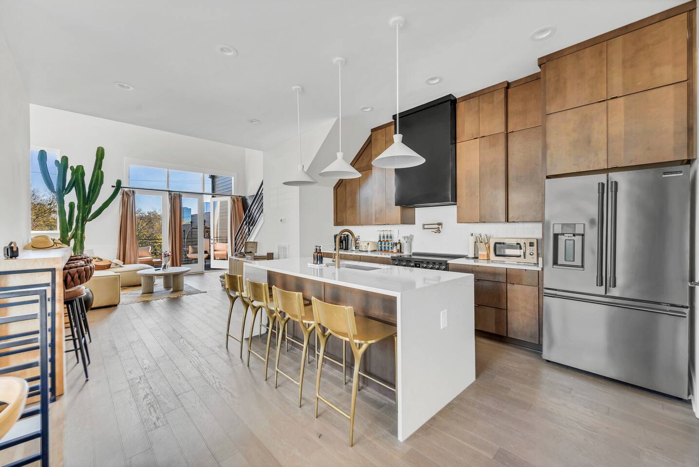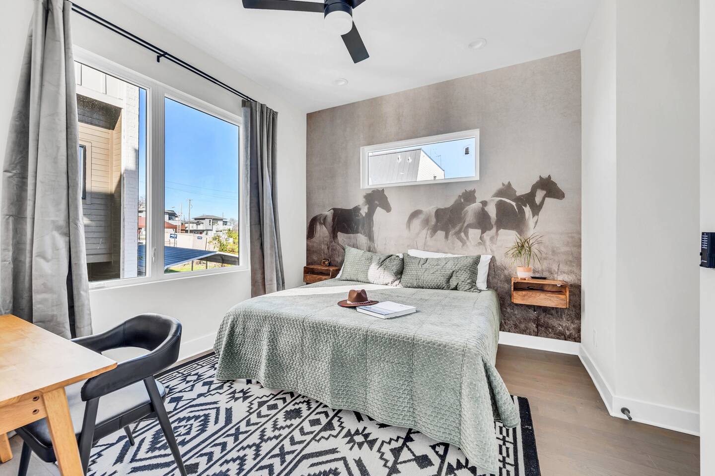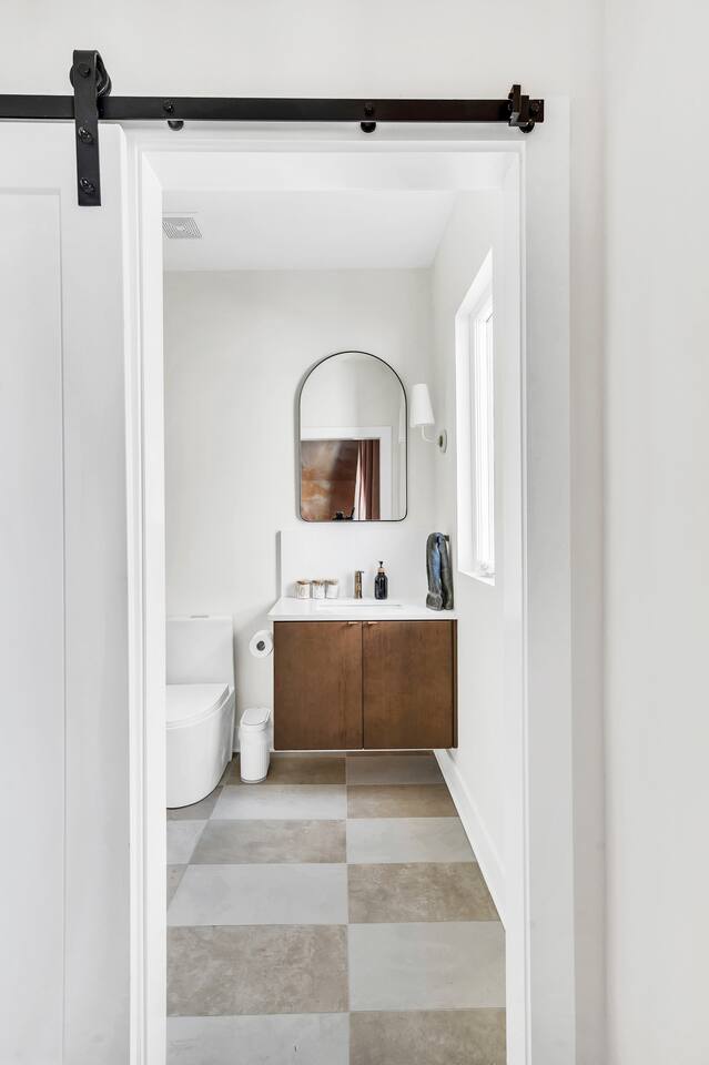 The AllSaints House™️ is a brand-new, luxury townhouse designed for large groups, families, and event travelers. Spanning four floors, it blends equestrian-Southwestern modern style with high-end finishes, ensuring a one-of-a-kind stay in Nashville’s trendiest district. ☞ 360° rooftop terrace w/ seating & dining for 12 ☞ 3/4 mile to Broadway & Downtown hotspots ☞ Walk to whiskey distilleries, wine bars, & live comedy ★ "This place is a 10/10—location, design, and comfort!"