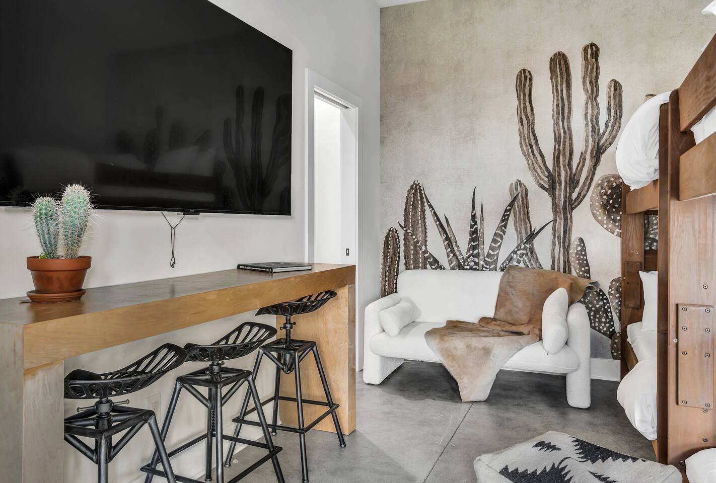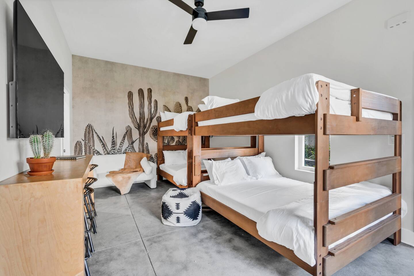 Add AllSaints House to your wishlist now by clicking the ❤️ in the upper-right corner! ✭ "Way better than any hotel—every detail was thought out!" Hosting is our craft. AllSaints House™️ offers: ☞ 9 beds to accommodate your full crew ☞ High-speed WiFi & dedicated workspaces ☞ Smart TVs in every room ☞ Chef’s kitchen + spacious dining area FLOORS: 1st Floor - AllTribes - 75” TV - Four Queens and Two singles (6 beds) 2nd Floor - WildWest - 55” TV, King (1 bed) 3rd Floor- DesertRose -32” TV, Queen (1 bed) 3rd Floor - Sedona - 65” TV, King (1 bed) THE ROOFTOP: ☞ Unmatched skyline views under a canopy of string lights ☞ Outdoor dining for 12 & cozy lounge seating ☞ Perfect for sipping whiskey & late-night conversations LOCATION: ☞ Walk to whiskey distilleries, wine bars, comedy clubs ☞ 3/4 mile to Broadway – Honky Tonks, Live Music, & Entertainment ☞ Close to Marathon Village, The Gulch, and Capital View ✭ "This place MADE our trip. We were minutes from Broadway but had our own quiet retreat!" Want more insider tips? Check out our IG: @AllSaintsHouse Other Perks: ☞ Garage parking for 2 cars + free street parking ☞ Keyless entry & 24/7 self check-in ☞ Stocked coffee bar & luxury bath amenities